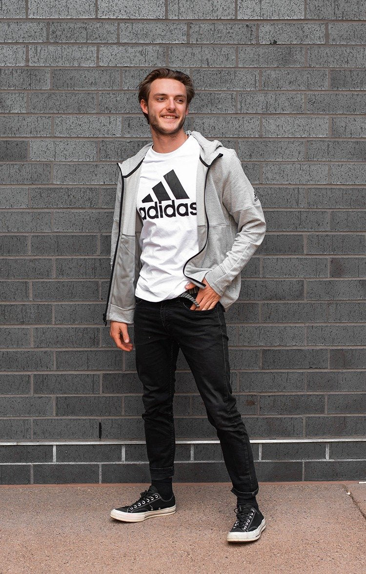Work hard, rest hard. The adidas Men's French Terry Stadium Jacket keeps you comfortable as you relax and recuperate after a long workout. The track jacket is made of soft heathered fabric and has a secret pocket for your phone.