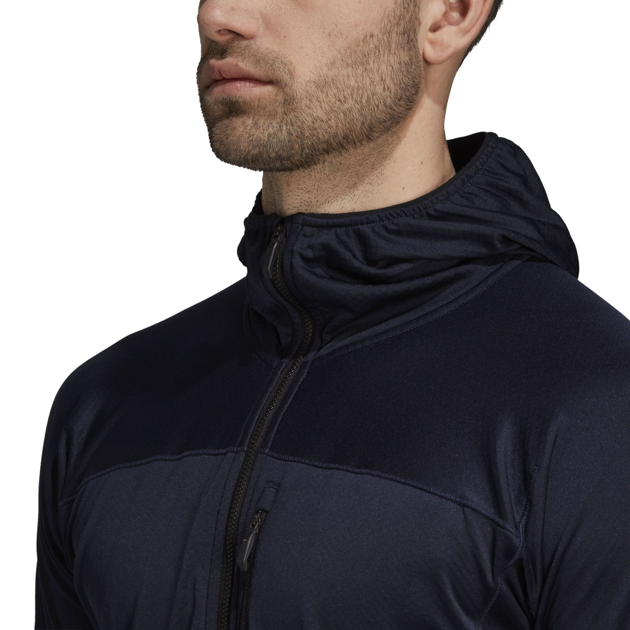 Designed for ease of movement and breathability, this men's fleece hoodie features a waffle grid interior to promote breathability and moisture management. The slim cut and fitted hood layer well under a shell, and the soft fleece fabric features built-in stretch for unrestricted movement.